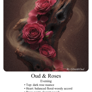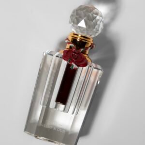 تلاقي فخم بين عمق العود ونعومة الورد، حيث يحتضن الخشب الداكن الوردة برقي دون أن يطغى أحدهما على الآخر. دهن