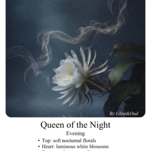 عبق زهرة ملكة الليل الشهير، رائحة زهرية ليلية آسرة تتفتح مع المساء وتفيض بنعومة مخملية ولمسة عطرية حالمة. عطر أنيق